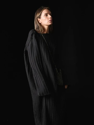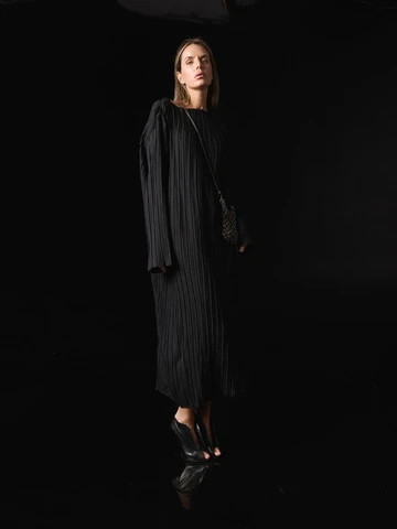 Платье гофре макси, черный