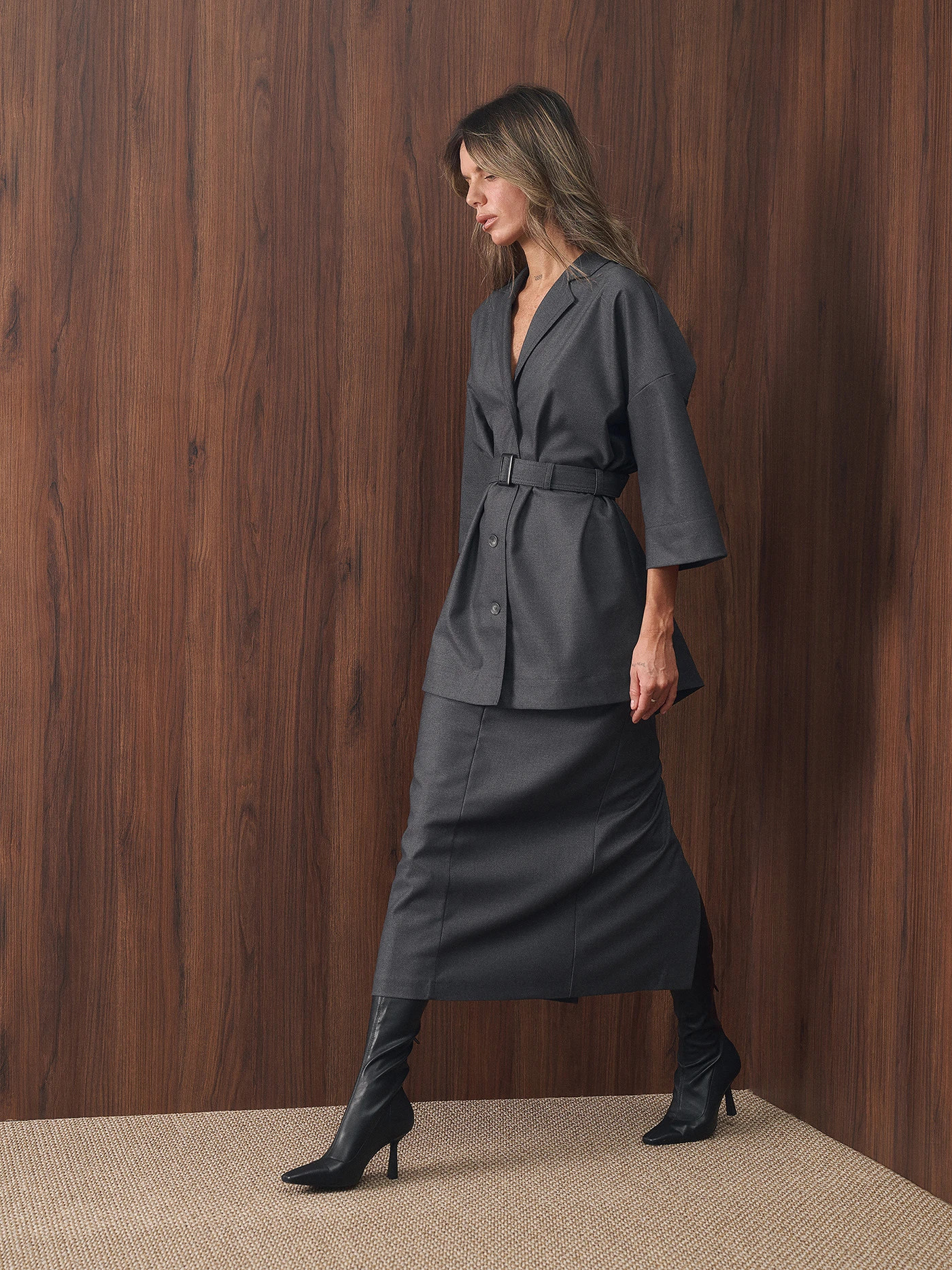 Пальто-пиджак из фактурной шерсти, шоколадный