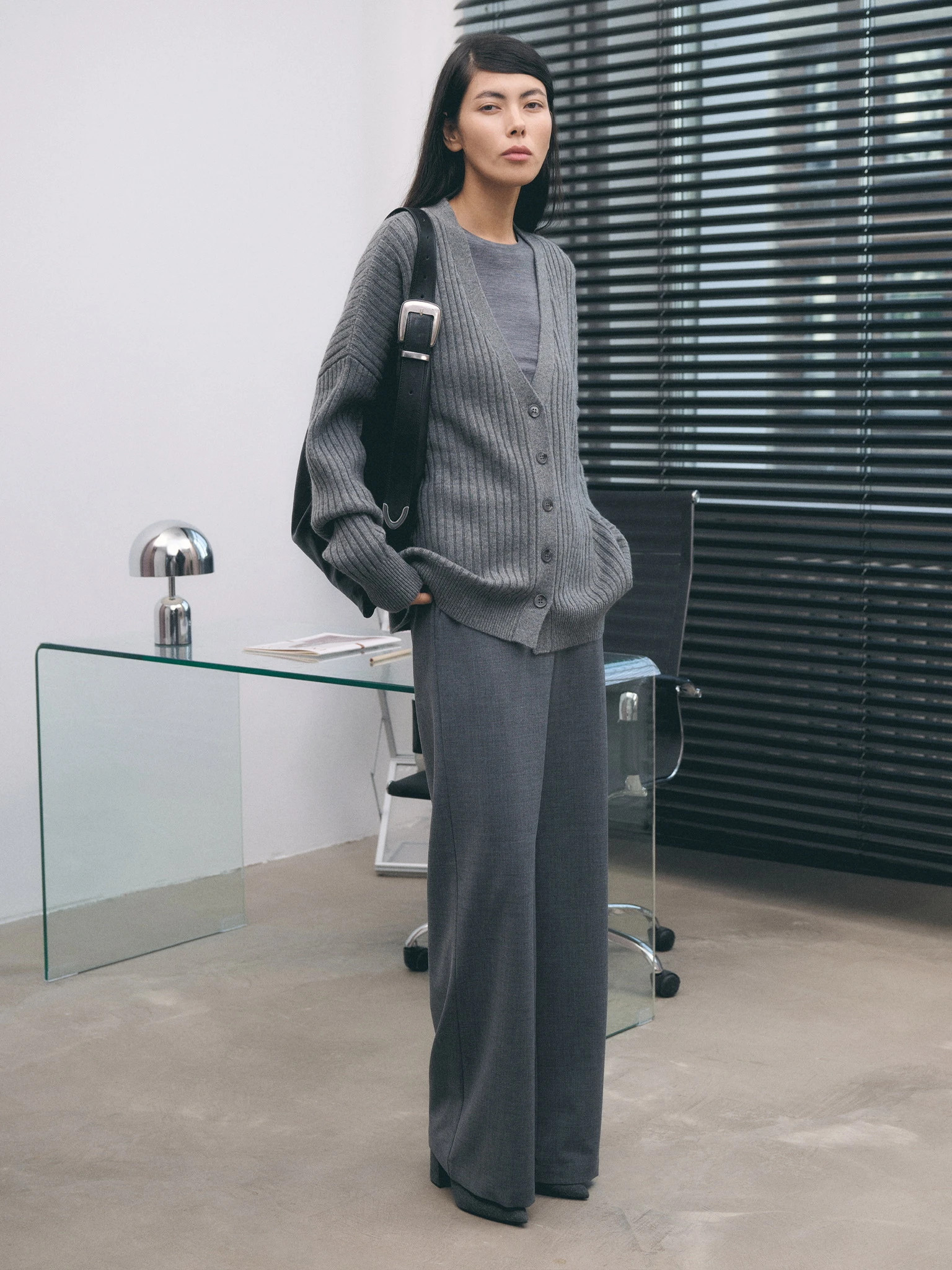 Кардиган с кашемиром, графитовый меланж