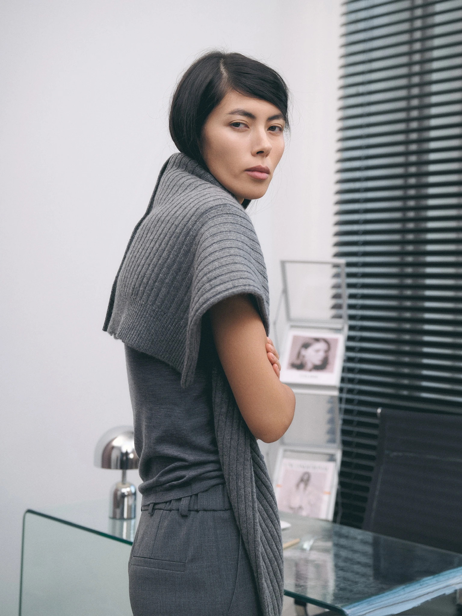 Свитер объемный с воротником-стойкой, серый