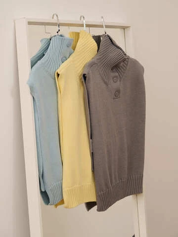 Вязаная манишка из мягкого хлопка. Высокий воротник-стойка на пуговицах и удлиненная передняя и задняя часть обеспечит тепло и комфорт в холодную погоду. Манишка будет отлично сочетаться с верхней одеждой, а так же как отдельный элемент вашего образа.
