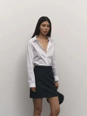 Базовая юбка мини с подкладкой из поливискозы. Выполнена из мягкой костюмной ткани с добавлением шерсти. Широкий пояс с эластичными вставками по бокам для комфортной посадки и застежка на потайную молнию сзади.