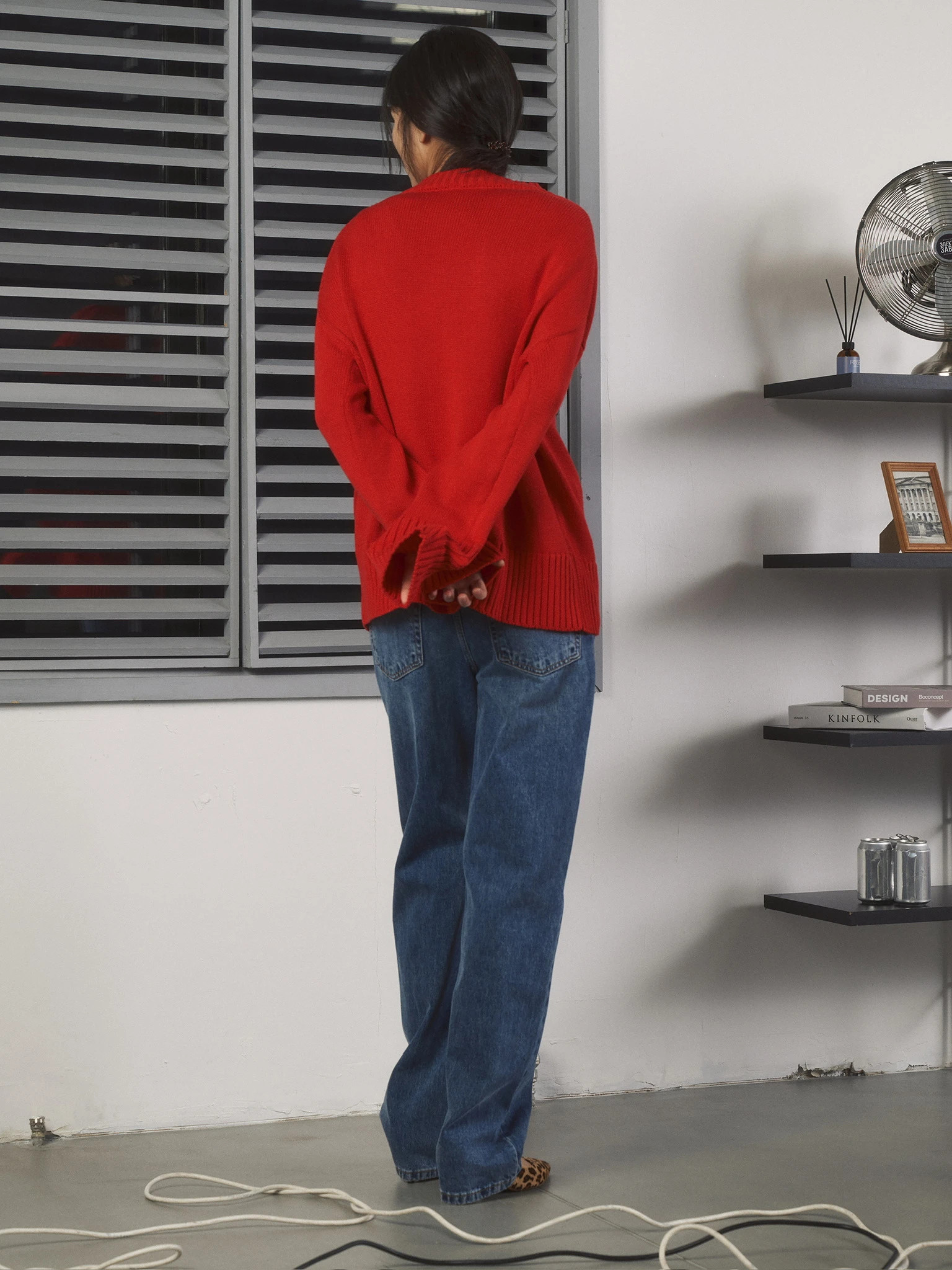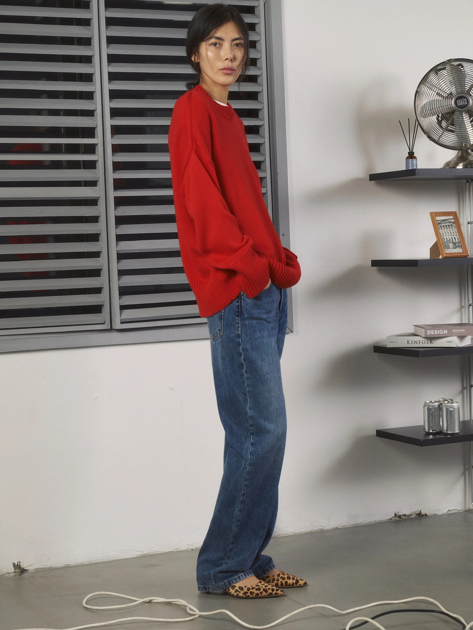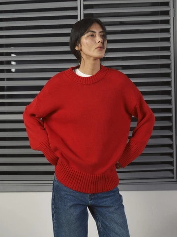 Джемпер объемный прямого кроя, красный