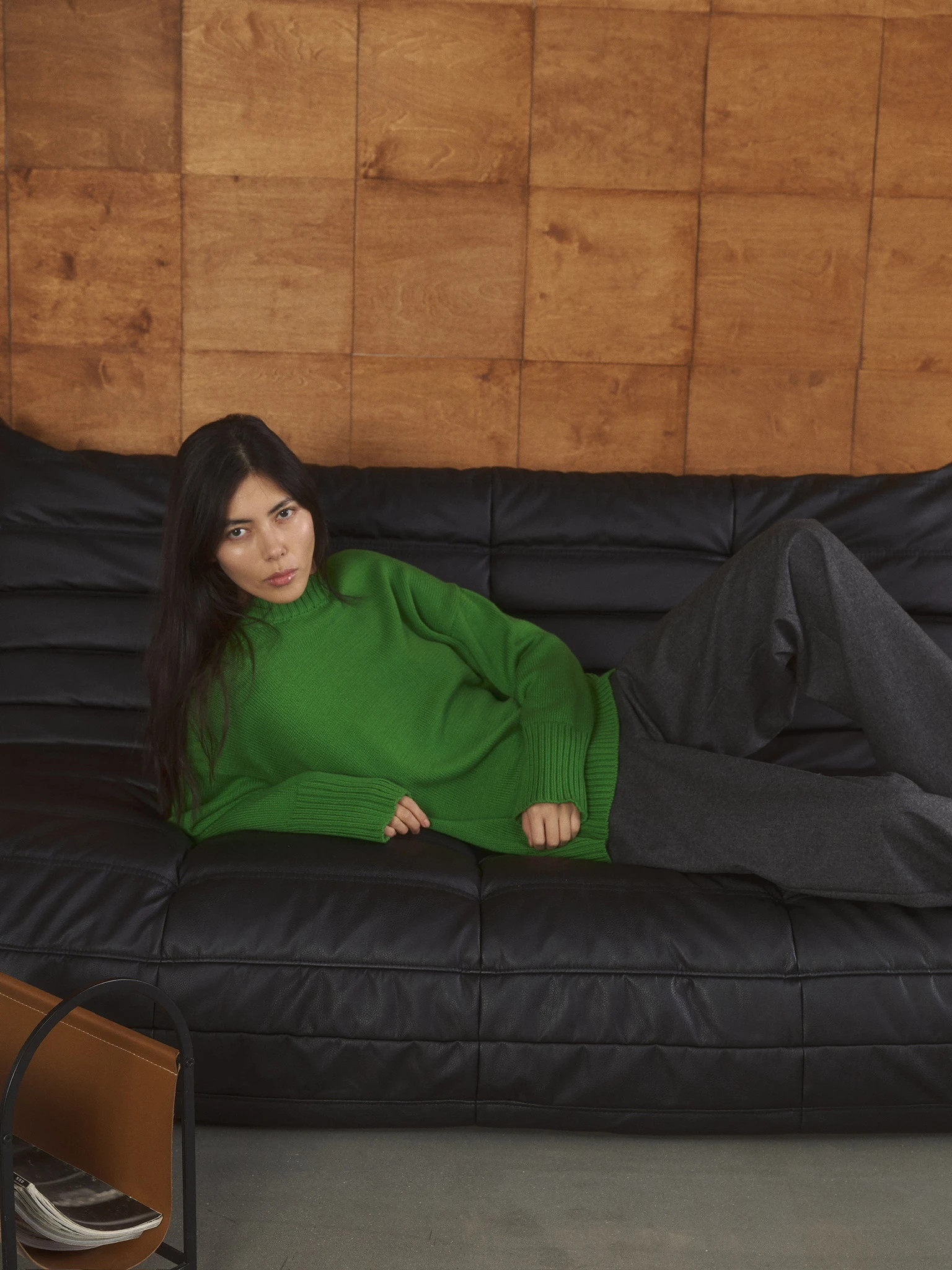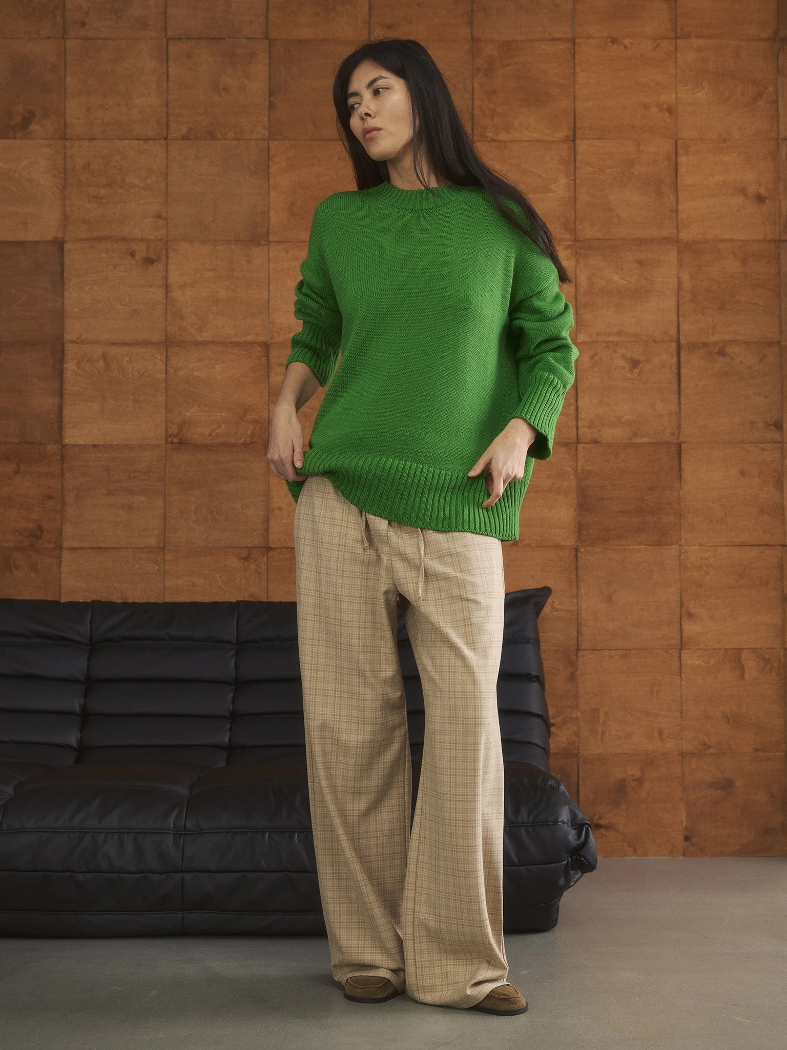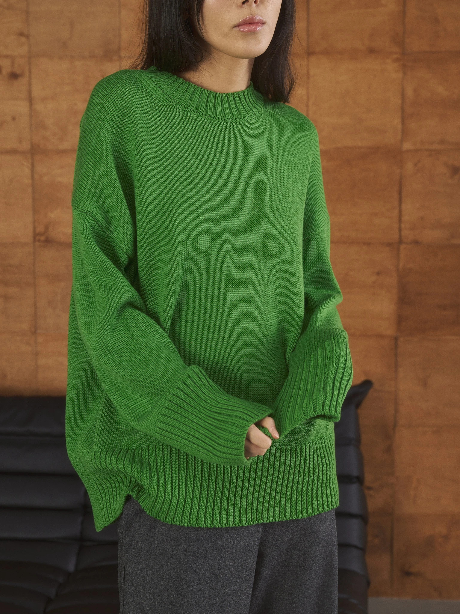 Джемпер объемный прямого кроя, зеленый